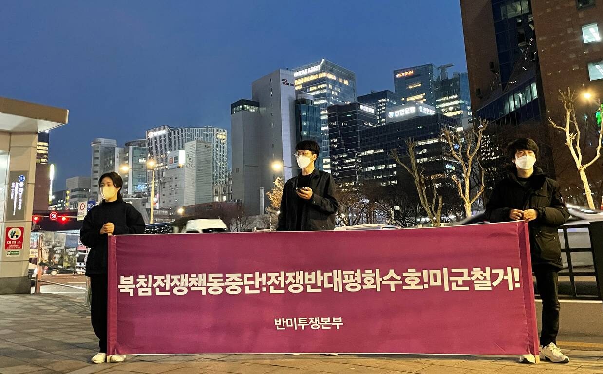 민중민주당학생당원은 <미국은 모든 전쟁의 시발점이다. 코리아전쟁과 베트남전쟁, 이라크·시리아·이란·아프가니스탄 등에서 벌어진 모든 전쟁의 원인은 미국에 있다.>며 <미국은 일제로부터 해방된 이땅을 지배점령하고 들어와 미군을 주둔시켰다. 남코리아의 주권은 모두 미국에게 빼앗겼고 전시에 군대를 움직일 수 있는 기본적인 권한도 모두 미국에게 있다.>고 짚었다.