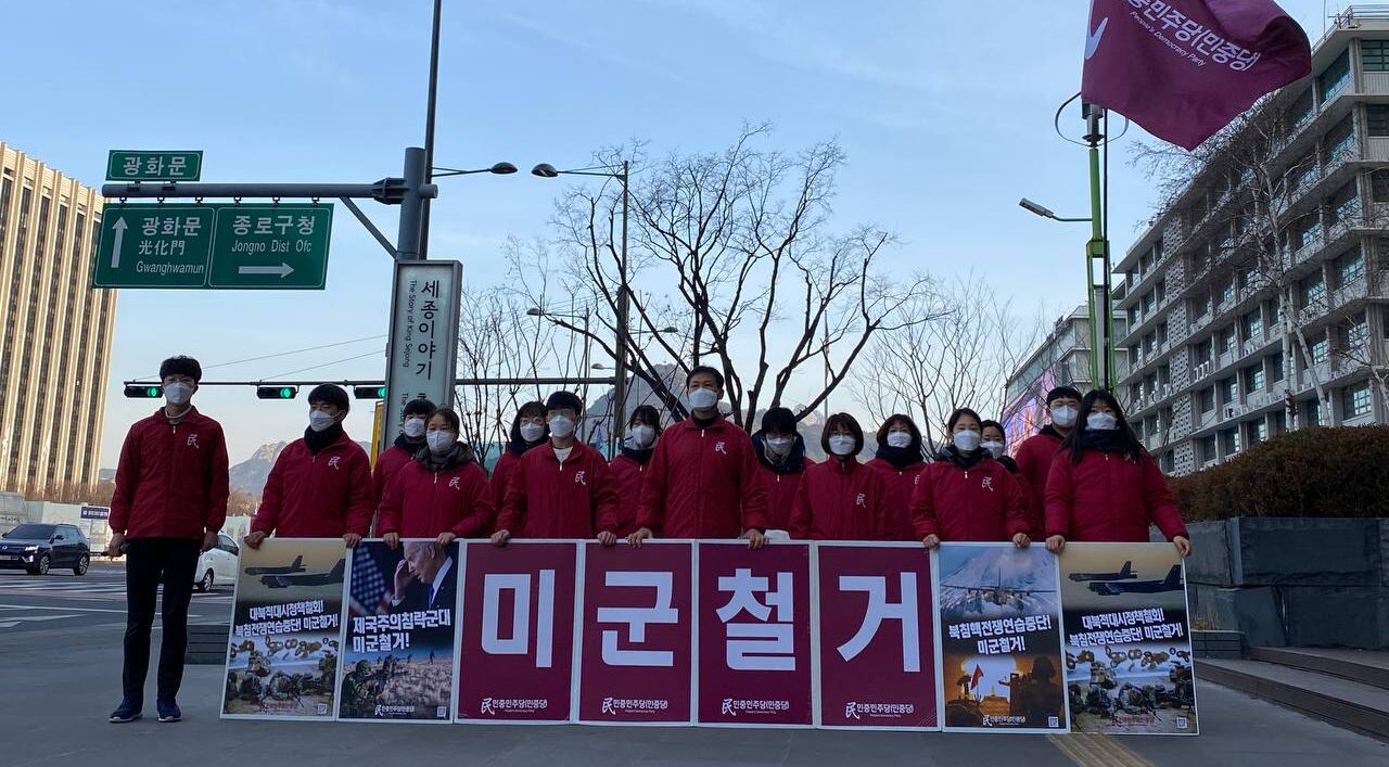 이어 <우리는 민족반역무리로부터 우리의 주권을 되찾기 위해 투쟁해야 하며 리질리언트쉴드, 콥노스22와 같은 북침핵전쟁책동을 연일 벌이고 있는 미제국주의에 반대해서 투쟁해야 한다. 이미 제국주의의 멸망은 확정적이다. 전세계의 민중들이 자신들의 삶을 옥죄어온 그 뿌리에 제국주의가 있었다는 것을 깨우치고 반미반제투쟁을 가열차게 벌이고 있기 때문이다.>라며 <어제는 35년전 표정두 열사가 산화했던 날이다. 독재정권타도와 광주학살의 진범인 미제국주의에 반대하며 스스로의 한몸을 불살라 미대사관으로 달려나갔던 열사의 한생은 결정적 시기를 맞이하는 우리민중에 방향을 제시해주고 있다. 민중민주당은 민족의 운명을 개척하는 투쟁, 반미반제투쟁에 온민중이 떨쳐나서는 그날을 위해 지금까지 그래왔던 것처럼 반미투쟁의 선봉에서 끝까지 싸워나갈 것이다.>라고 밝혔다.