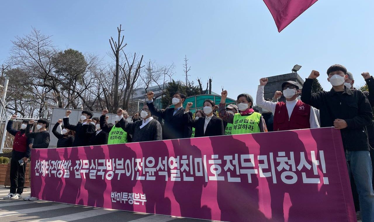 22일 반미투쟁본부는 국방부앞에서 <선제타격망발·집무실국방부이전윤석열친미호전무리청산!> 집회를 진행했다.