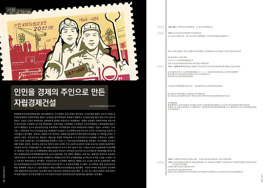 반제반봉건민주주의혁명단계의 민주개혁에서는 토지개혁이 주된 과제로 제기된다. 토지문제의 해결은 농촌에 기반을 둔 친일반동세력의 경제적지반을 없애고 농민들을 봉건적억압과 착취에서 해방하고 농업생산력을 빨리 발전시키는것과 관련된다. 농업은 산업의 양대분야로 경제전반의 발전에 직접적으로 연관돼있다. 일제와 친일파의 경제적지반을 허무는데서 중요산업을 국유화하는것 또한 핵심과제다. 중요산업을 국유화해야 노동계급과 근로인민대중을 노예적착취와 예속으로부터 해방할수 있으며 중요생산수단을 민족경제의 자주적발전과 인민의 복리증진에 이용할수 있었다. 북에서는 1945 가을 3·7제투쟁과 이어 토지청원운동을 전개하면서 농민들이 토지개혁의 담당자로서의 자각과 사상적준비를 튼튼히 갖추게 됐다고 평가했다. 북에서는 해방된 이후 맞이하는 첫해농사를 위해 농사철이전에 토지개혁을 다그쳐야할 과제가 시급하게 나섰다. 김일성주석은 평안남도 대동군을 비롯한 여러농촌에 나가 봉건적토지소유관계를 구체적으로 요해하고 이에 기초해 실정에 맞는 토지개혁방침을 확정하고 1946.3.5 <북조선토지개혁법령>을 발포했다. 토지개혁을 실시하기 위한 투쟁은 전당적, 전군중적 운동으로 벌어져 20일 남짓한 기간 100만325정보의 일제소유토지와 친일파·민족반역자·지주들의 토지가 무상몰수됐으며 그중 98만1390정보의 토지가 땅이 없거나 적은 72만4522호의 농민들에게 무상분여됐다. 북에서는 이와 같은 토지개혁방침에 대해 농촌에 뿌리깊이 남아있던 봉건적인 토지소유제도와 착취관계를 철저히 없애고 반제반봉건민주주의혁명단계에서의 농민·농업문제를 가장 정확히 해결할수 있게 하는 혁명적인 방침이며 농촌에서 자본주의적요소·부농경리의 장성을 최대한으로 제한함으로써 장차 농업협동화를 실시하는데 유리한 조건을 조성할수 있는 독창적인 방침이었다고 평가했다. 김일성주석은 토지개혁의 혜택으로 제땅을 갖고 농사를 짓게 된 농민들에게 <해방된조선의첫봄을증산으로맞이하며한치의땅도묵이지말자!>고 농업증산투쟁을 호소했다. 토지개혁과 함께 중요산업국유화를 법제화해 1946.8.10 <산업·교통운수·체신·은행등의국유화법령>을 발포했다. 자료에 의하면 중요산업의 국유화에 의해 전체산업의 90%이상인 1034개의 공장·기업소들이 전인민적소유로 됐다. 또 모든 운수·체신시설들과 은행·대외무역·문화기관들이 국가에 장악됐으며 자주독립국가건설과 인민복리증진의 물적토대로 활용될수 있게 됐다.