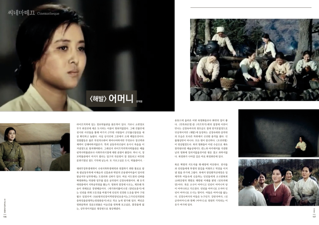유튜브에 올라온 어떤 북영화들보다 화면의 질이 좋다. <민족과운명>중 <카프작가>편의 절정에 이찬이 만나는 김정숙여사의 첫모습도 절대 잊지못할정도로 인상적이지만 <해발>에 등장하는 김정숙대원·공작원의 모습은 또다른 차원에서 신선한 충격을 줬다. 인물형상만이 아니다. 모든 면이 참신하다. <조선의별>이 연상될정도다. 북의 영화들이 이런 수준으로 계속 창작된다면 예술성에서도 깐느와 아카데미를 석권한 남의 영화에 밀리지않을것이란 평은 결코 과하지않다. 북영화가 나아갈 길은 바로 북영화안에 있다.