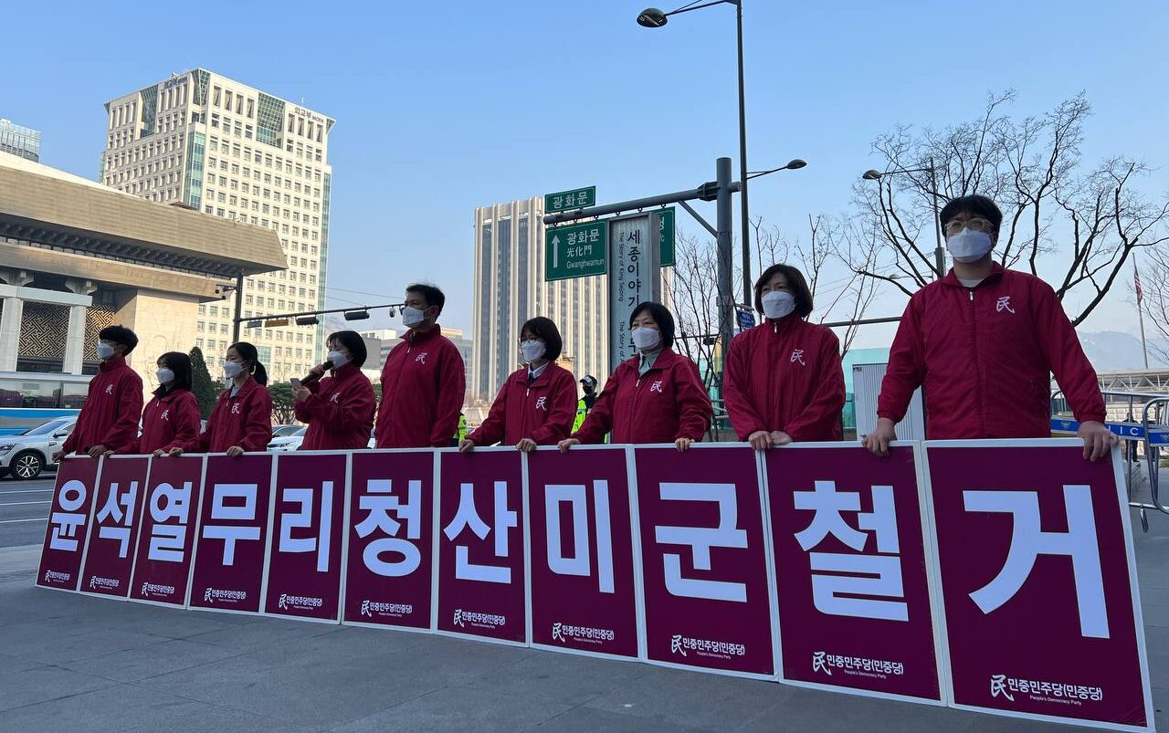 민중민주당반미반전특별위원회위원장은 <전쟁정세가 이어지고 있다. 윤석열은 당선전부터 선제타격을 망발했다. 당선전부터 펜스를 만나 미남<동맹>을 떠들어댔다. 북침전쟁연습을 계속하겠다는 것이고 미군을 주둔시키기 위한 수조원의 돈을 갖다바치겠다는 것이고 그로 인한 모든 피해를 우리민중에게 떠넘기겠다는 것이다.>라고 힐난했다.