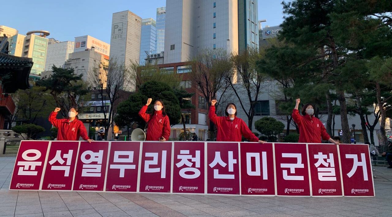 이날 민중민주당학생당원은 <윤석열은 평택미군기지에 방문해 <평택은 튼튼한 한미동맹의 상징>이며 <당선인으로서 처음 방문한 부대가 한미군사동맹의 심장부인 캠프험프리스>라고 떠들며 친미매국성을 드러냈다>고 지적했다.