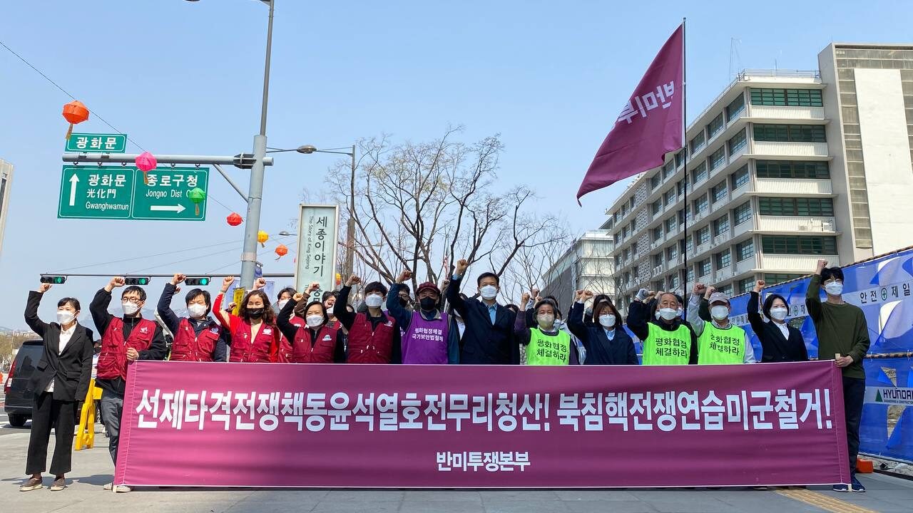 이어 <선제타격전쟁책동 윤석열무리 끝장내자!>, <북침전쟁연습 중단하고 미군 철거하라!>, <북침전쟁책동 분쇄하고 민족자주 앞당기자!> 구호를 힘차게 외쳤다.