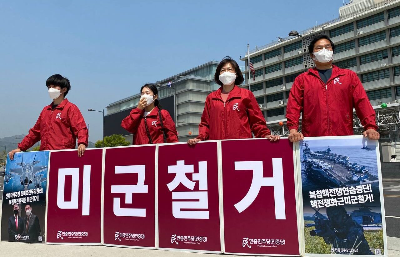 19일 민중민주당(민중당)은 미대사관앞, 국방부앞에서 <북침핵전쟁연습중단! 선제타격윤석열무리청산! 전쟁화근미군철거!> 필리버스터를 진행했다.