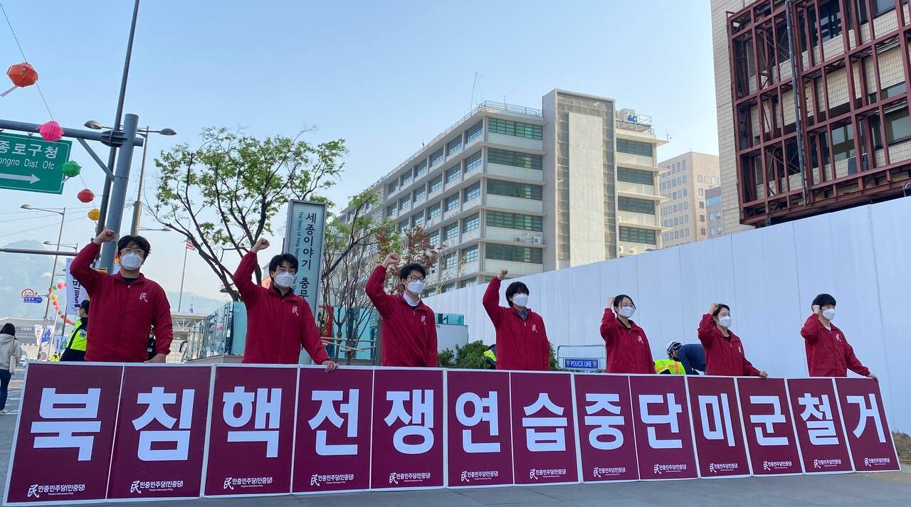 20일 민중민주당(민중당)은 미대사관앞, 안국역인근에서 <핵전쟁 불러오는 북침핵전쟁연습 즉각 중단하라!>, <친미매국호전광 윤석열무리 깨끗이 청산하자!>, <반미민중항쟁으로 침략군 미군을 몰아내자!> 구호를 외치며 정당연설회를 진행했다.