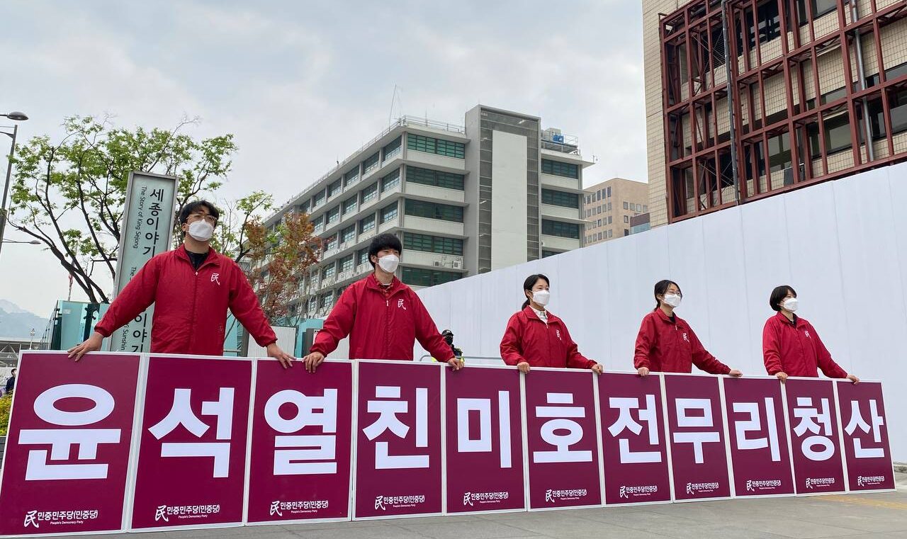 민중민주당학생당원은 <윤석열은 박근혜를 만나 <명예회복에 돕겠다>는 망언을 지껄였다. 촛불민심을 배반하고 반민중 반민족, 자멸의 길을 선택한 친미호전광 윤석열이다. 북수뇌부제거를 목적으로 한 참수작전인 <한미연합훈련>을 벌여 기어이 같은 민족을 상대로 전쟁을 하겠다고 한다. 반북반공심리를 악용해 우리사회의 기득권을 틀어쥐고 있는 윤석열무리는 자신들의 이익을 위해서라면 얼마든지 외세에 나라를 팔아먹을수 있는 악폐중에 악폐다.>라고 힐난했다.