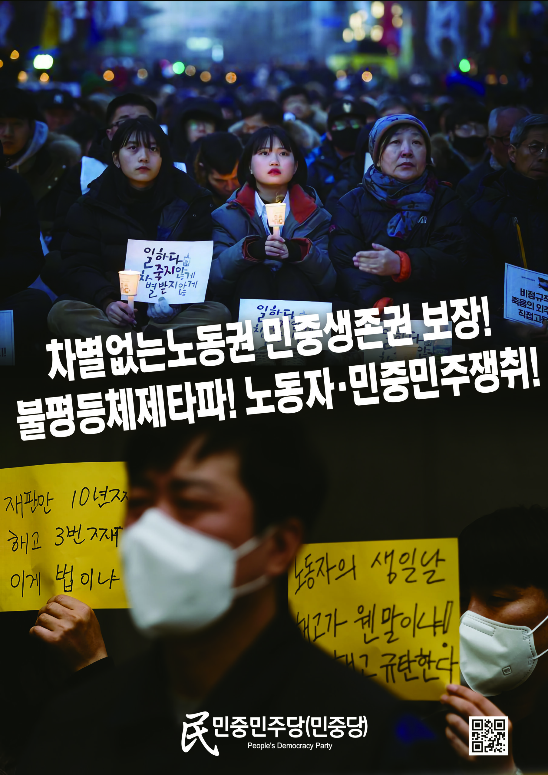 차별없는 노동권 민중생존권 보장! 불평등체제타파! 노동자·민중민주쟁취!