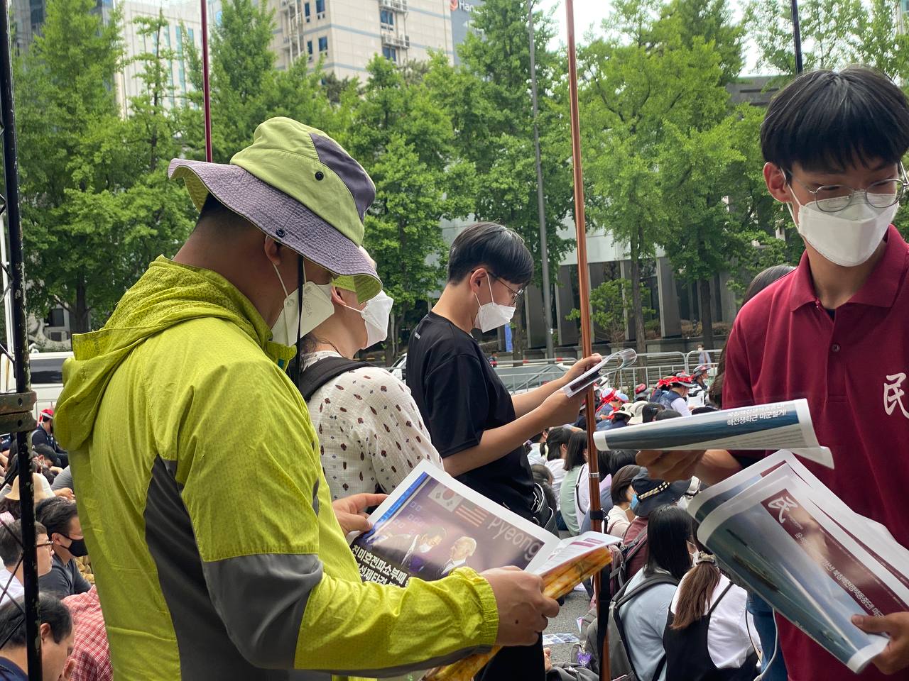 이어 대회참가자들에게 민중민주당신문 民95호 <윤석열국민의힘청산! 북침핵전쟁책동중단! 미군철거!>를 배포했다.