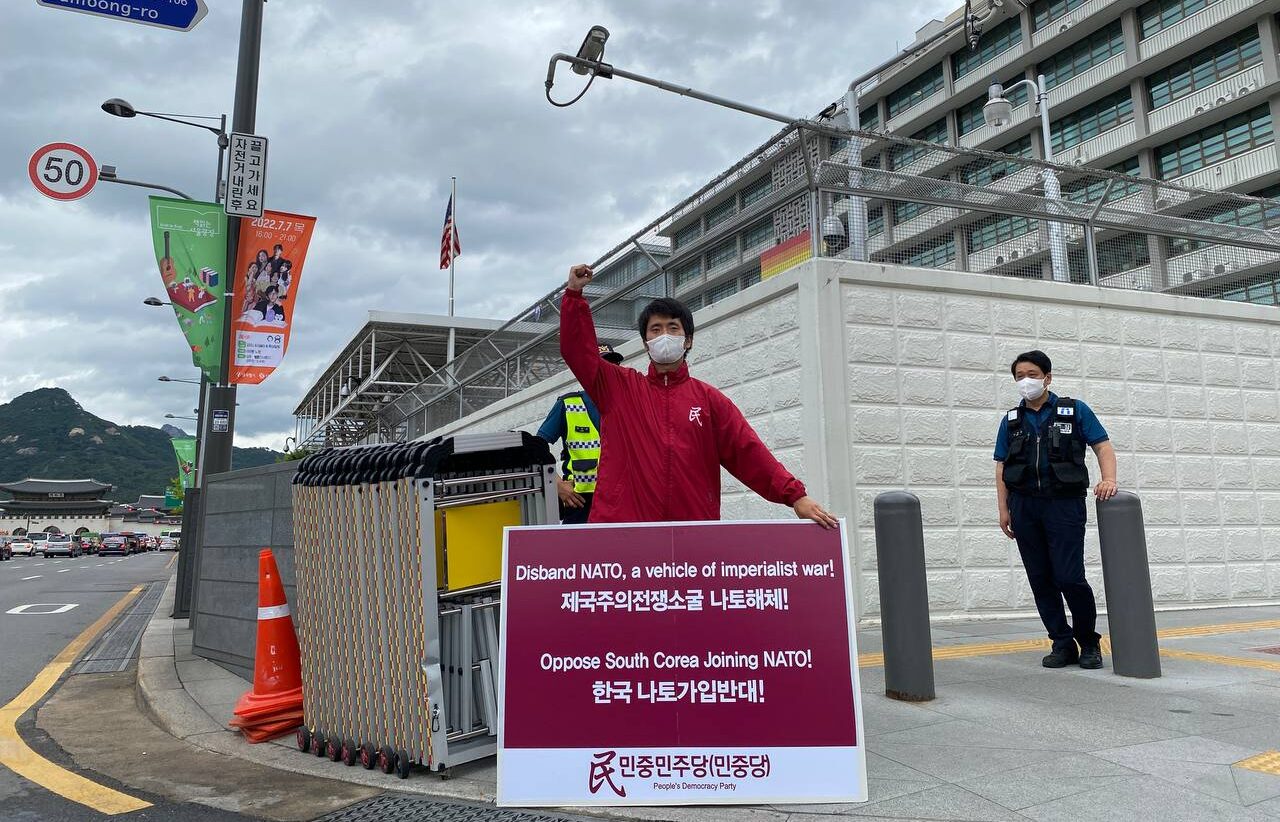 이날 당원들은 윤석열무리의 나토정상회담참석을 규탄하며 <제국주의전쟁소굴 나토해체! 한국 나토가입반대!>, <핵전쟁화근 미군철거! 친미친일파쇼호전광 윤석열무리청산!> 구호를 함께 들었다.