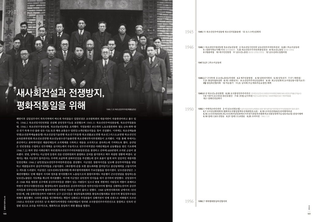 해방이후 김일성주석이 북측지역에서 빠르게 자리잡을수 있었던것은 조국광복회의 대중지반이 작용한것이라고 볼수 있다. 1946.2 북조선임시인민위를 건설해 중앙정부기능을 보장했으며 1945.11 북조선민주여성총동맹, 북조선직업총동맹, 1946.1 북조선민주청년동맹, 북조선농민동맹을 조직했다. 직업동맹은 853개의 노동조합분회와 철도·금속·화학·광산·전기·목재·수산·출판·섬유·식료·토건·체육·교통운수·일반등14개산별조직들을 묶어 건설됐다. 이외에도 북조선예술총연맹(조선문학예술총동맹)·북조선공업기술연맹·북조선기자동맹·북조선불교도연맹·북조선그리스도교연맹·북조선인민교육문화후원회·북조선보건연맹·북조선농림수산기술총연맹·북조선애국투사후원회등이 조직됐다. 이를 통해 북에서는 분산적이고 분파적이었던 대중단체들의 조직체계를 극복하고 대중을 조직적으로 결속하는데 기여하도록 했다. 공산당은 인민정권을 수립하고 민주개혁을 실시하는데서 주동적으로 민주주의적정당·사회단체들과 공동행동을 벌인 기초위에 1946.7.22 북의 정당·사회단체가 북민전(북조선민주주의민족통일전선)을 결성하고 산하에 600만명의 조직된 군중이 결속됐다. 반면, 남에서는 미군정의 등장과 건준·인민위원회의 불법화로 갈피를 잡지못하고 매우 복잡한 정황에 빠졌다. 남에서는 애초 미군정이 들어온다는 우려에 조급하게 공화국건설을 추진했는데 결국 효용이 없게 되자 실질적인 대중적통일전선체로 1946.2 남민전(남조선민주주의민족전선)을 결성했다. 미군정은 정판사사건을 날조해 공산주의자들을 탄압하고 대중들로부터 공산주의자들을 고립시켰다. <좌우합작>운동 또한 중도좌파를 끌어당기고 공산당세력을 고립시키려는 의도를 드러냈다. 미군정은 <남조선과도입법의원>에 좌우합작위원회의 주요인물들을 망라시켰다. 남조선공산당은 그패권적행태로 인해 대중적 지지와 엄호를 받지못했으며 노동당으로의 통합이후에도 여운형이 근로인민당을 창당하는등 남조선노동당은 지도력을 확고히 하지못했다. 여기에 미군정은 남민전의 인사들을 대거 검거하며 탄압했다. 김일성주석은 1948 북을 방문한 김구에게 공산주의자들중 결함이 있는 사람들이 있으나 몇몇 개별적인 사람들의 작풍이 문제라고 하면서 반미구국통일전선을 형성하는데서 중요한것은 공산주의자들과 민주인사들사이에 합작을 실현하는것이며 공산주의자들과 민주인사들사이에 합작하지못할 아무런 이유와 조건이 없다고 말했다. 1948 남북연석회의와 남에서의 <단선단정>에, 9월 공화국창건까지 이뤄지자 김구·김규식등은 통일독립촉성회를 통일촉진협의회로 발전시켜 통일정부수립을 위해서 활동했다. 나라의 분열을 영구화하려는 책동이 심화되고 무장충돌이 심해지면서 언제 전쟁으로 비화될지 모르던 1949.6 북민전과 남민전은 남·북·해외70여개정당·사회단체들이 망라된 조국통일민주주의전선으로 통합하고 민족의 단합된 힘으로 조국을 자주적으로, 평화적으로 통일하기 위한 활동을 벌였다.