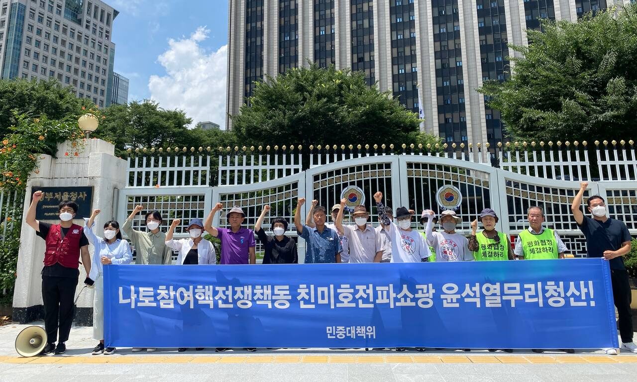 1일 국가보안법철폐국가정보원해체조선일보폐간을위한민중대책위원회(민대위)는 <나토참여핵전쟁책동 친미호전파쇼광 윤석열무리청산!> 집회를 진행했다.