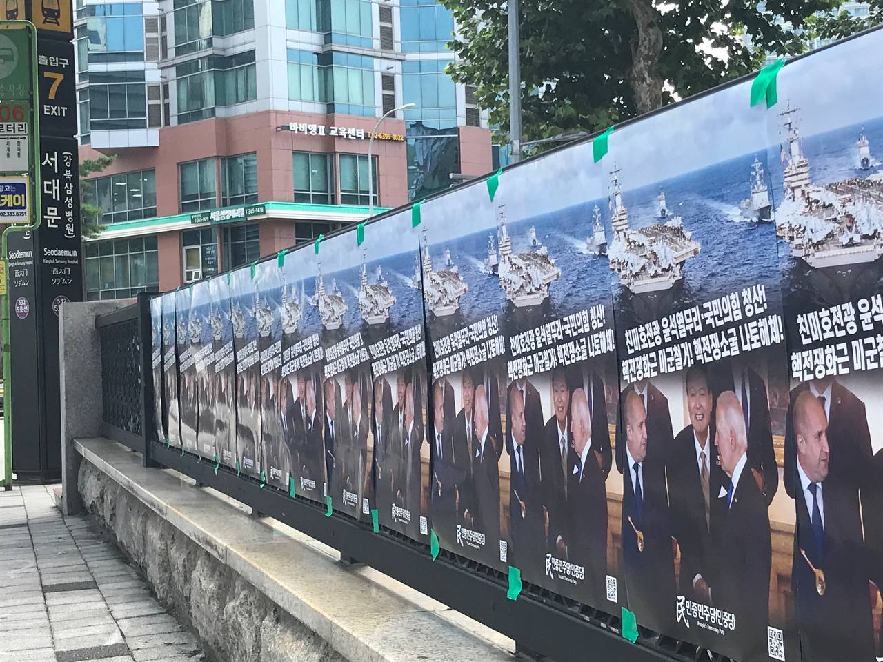 정당연설회 민중민주당 서대문역인근 〈친미호전광 윤석열무리·국민의힘 청산!〉 포스터부착 2022년 7월 16일 FacebookTwitter 15일 민중민주당(민중당)은 서대문역인근에 <친미호전광 윤석열무리·국민의힘 청산! 핵전쟁화근 미군철거! 핵전쟁소굴 나토해체!> 포스터를 부착했다.