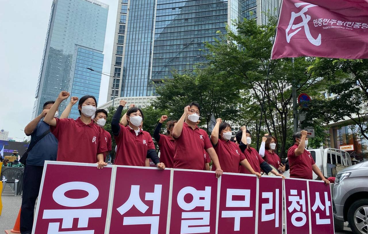 민중민주당학생당원은 <제국주의침략세력에 의해 코리아반도·동아시아의 핵전쟁정세가 날이 갈수록 고조되고 있다>, <미제침략세력과 함께 손을 잡고 윤석열친미호전무리는 하루가 멀다하고 북침핵전쟁책동을 벌이고 있는 판국이다>라며 <윤석열은 파쇼적 공안탄압을 밖으로는 북침전쟁책동을 감행하며 우리민족과 우리민중을 완전히 배반하고 있다. 동시에 통일애국세력과 노동운동세력에게 파쇼적 공안탄압을 집중하며 대표적인 파쇼광으로서의 면모를 보이고 있다.>고 지적했다.