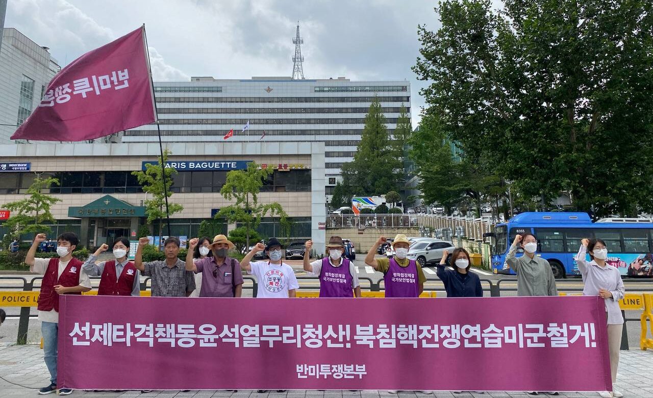 22일 반미투쟁본부는 용산국방부대통령실앞에서 <선제타격책동 윤석열무리청산! 북침핵전쟁연습 미군철거!> 22차반미대장정기자회견을 진행했다.