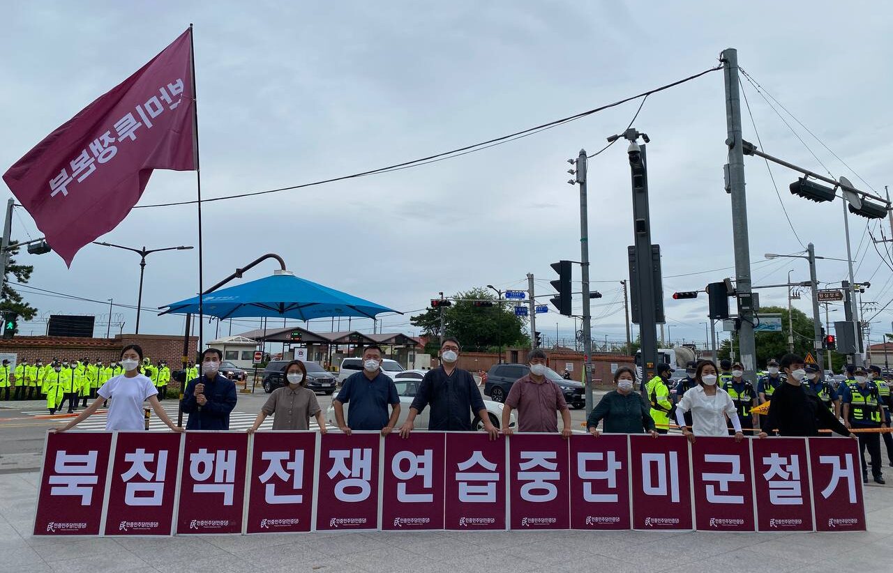 민중민주당경기도당위원장은 <코리아반도는 일촉즉발의 핵전쟁전야를 맞고 있다. 9월1일까지 실시되는 을지프리덤실드(UFS)군사연습은 <대북선제타격>, <북수뇌부제거>를 목적으로 하는 <작전계획5015>에 따른 북침핵전쟁연습이다.>라며 <미제침략군기지이자 코리아반도·아시아전쟁기지인 캠프험프리스기지에 박혀있는 미남연합사령관 라캐머라는 친미호전부패파쇼 윤석열과 윤석열군부호전무리와 같이 비공개간담회를 가지며 북침핵전쟁모의를 했다>고 지적했다.