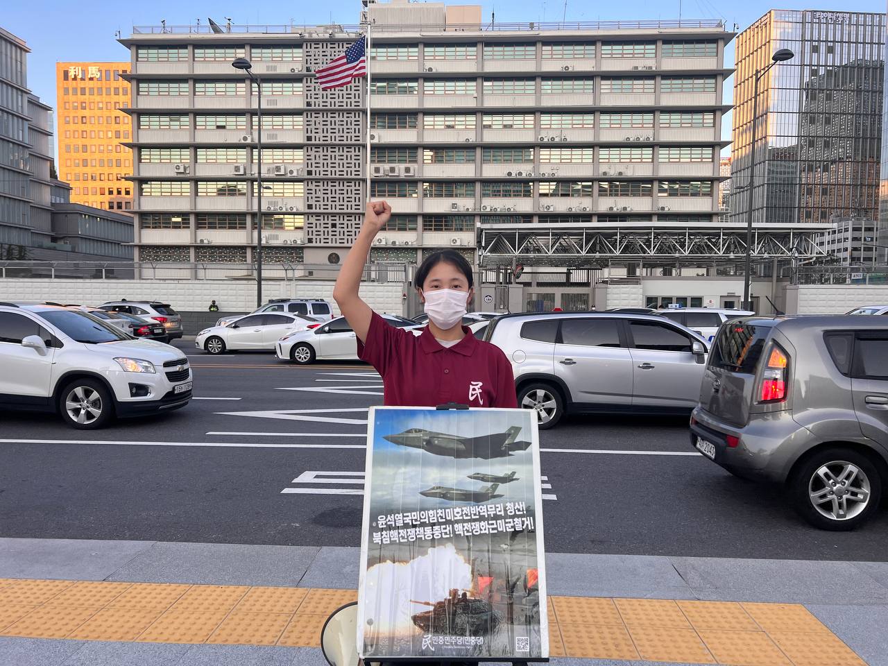 6일 민중민주당(민중당)은 미대사관앞에서 <선제타격망발 윤석열무리청산! 북침핵전쟁책동중단! 핵전쟁화근 미군철거!> 구호를 들고 평화시위를 2240일째 전개했다.