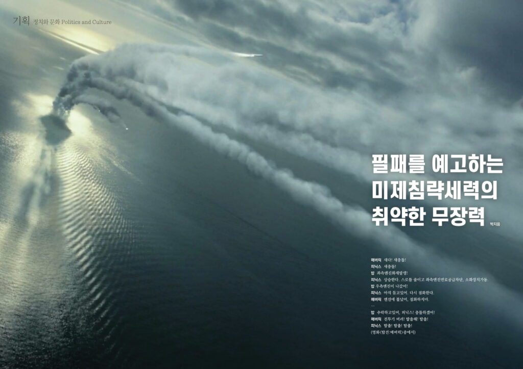 항쟁의기관차 〈2022.10 항쟁의기관차〉 필패를 예고하는 미제침략세력의 취약한 무장력 2022년 10월 14일 FacebookTwitter 매버릭 새다! 새충돌! 피닉스 새충돌! 밥 좌측엔진화재발생! 피닉스 상승한다. 스로틀 줄이고 좌측엔진연료공급차단, 소화장치가동. 밥 우측엔진이 나갔어! 피닉스 아직 돌고있어. 다시 점화한다. 매버릭 엔진에 불났어, 점화하지마. … 밥 추락하고있어, 피닉스! 충돌하겠어! 매버릭 전투기 버려! 탈출해! 탈출! 피닉스 탈출! 탈출! 탈출! (영화<탑건:매버릭>중에서)