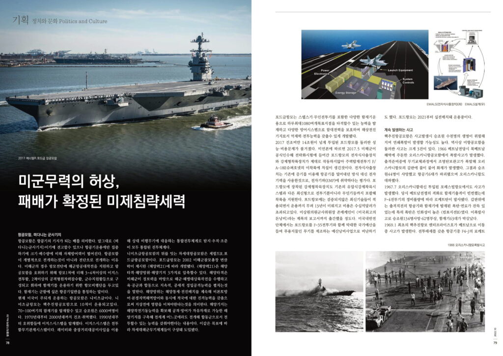 미핵항모가 미국의 제국주의침략성을 대표하는 무력임은 틀림없다. 핵항모가 없다면 대양을 건너 침공하지못하기에 그렇다. 1990 걸프전때부터 지금까지 미전쟁전략은 항모전투단을 동원해 상대국의 전략거점들을 파괴한 다음 상륙준비단을 투입해 점령하는것이다. 한편 미국이 세계를 지배하고 적국들을 위협하려면 5대양에 군함130척을 항시대기해야하는데 현재 90척정도만 배치된 상황이다. 해양지배력이 떨어지며 북·중·러에 의해 미핵항모가 완전히 유명무실화되는 현실은 미제침략세력의 종국적패배를 예측하게 한다.