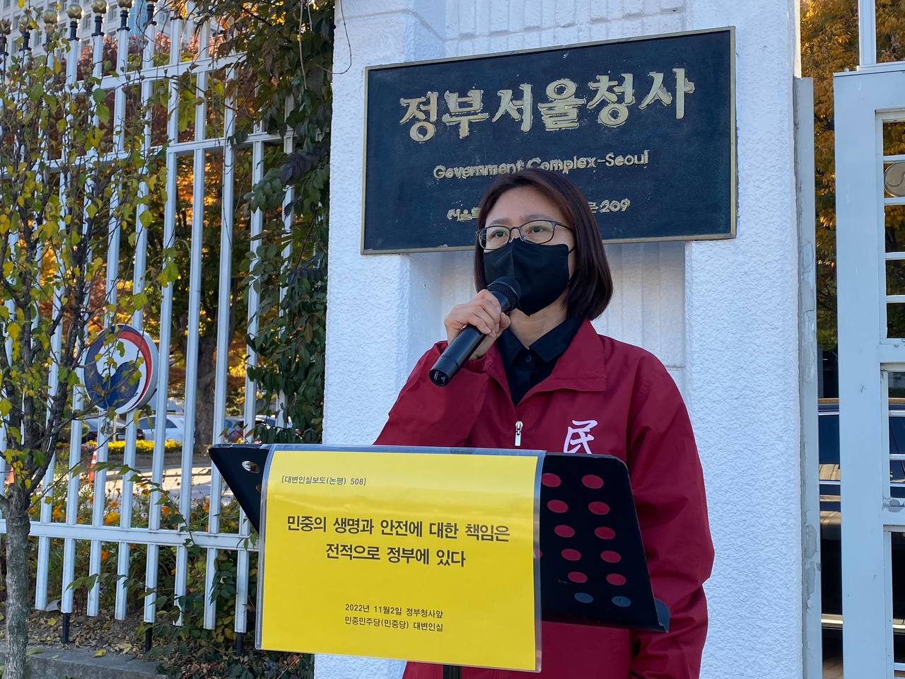 3. 민중의 생명과 안전에 대한 책임은 전적으로 정부에게 있다. 그렇게 하라고 민중이 준 권력이다. <대통령출퇴근길에 투입돼 밤낮 야근까지 고충을 토로하고 있는 경찰인력이 700명, 마약 및 성범죄 단속에 혈안이 돼 투입된 경찰200명, 모두 용산경찰서 관할 인력>이라며 이번 참사의 원인제공자로 윤석열정부를 지목한 남영희민주연구원부원장의 말은 사실 상식적이다. 이를 두고 <정략>이라고 공격하는 윤석열정부와 국민의힘이야말로 지극히 정략적이다. 윤석열정부가 이번 참사에 대한 책임을 스스로 통감하며 유족들에게 진정어린 사죄와 철저한 배상을 하는 것은 최소한의 책무고 도리다. 한편 이번참사의 주원인을 주말에 있었던 각종 집회들에 돌리고 <국가애도기간>이라는 이유로 민중의 진실규명요구와 정부책임발언을 억압하려는 망동이 이미 시작됐다. <10.29참사>를 민중탄압의 계기로, 정략적으로 악용하려는 망동은 당장 중단돼야 한다. 근본적으로는 국가적 차원에서 안전규제를 강화해 <10.29참사>를 반복하지 말아야 한다. 우리민중은 이명박정부의 노후선박선령제한완화와 박근혜<정부>의 선박안전점검완화가 결국 세월호참사를 불러왔다는 것을 생생히 기억하고 있다. 윤석열정부하에서의 각종 안전규제완화가 매우 우려되는 이유다. 정부의 정책은 오직 민중의 생존과 발전만을 위해 실행돼야 한다. 참사는 절대로 더이상 반복되지 말아야 한다.