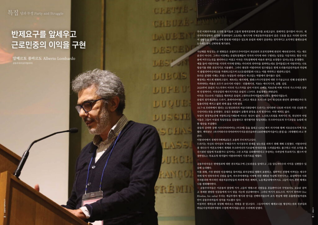 우선 이회의자리를 조직한 동지들과 그들의 형제적결의에 감사를 보내고싶다. 관례적인 감사함이 아니다. 제국주의적침략과 심각한 전쟁위험이 고조되는 현시기에 국제공동주의운동이 같은 구호를 들고 거리와 일터에서 사람들을 조직하는것에 발맞춰 이뤄질수 있도록 유럽과 세계가 공유하는 정치적이고 조직적인 플랫포옴에 도착하는것이 긴박하게 제기된다.