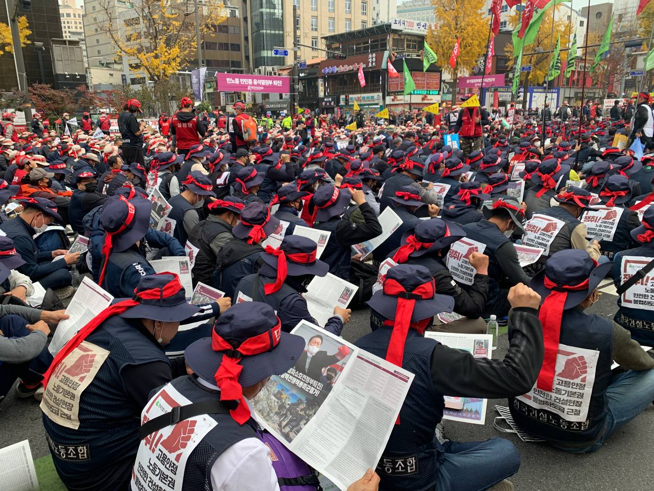 이날 전국노동자대회에는 주최측 추산 9만여명, 16개산별연맹 노조원둘이 집결했다. 조합원들은 <이대로 살수 없다!> 구호피시를 들었다. 참가자들은 <10.29참사>에 대한 정부책임과 <노란봉투법> 입법을 촉구하고 윤석열정부의 노동정책을 강력히 규탄했다.