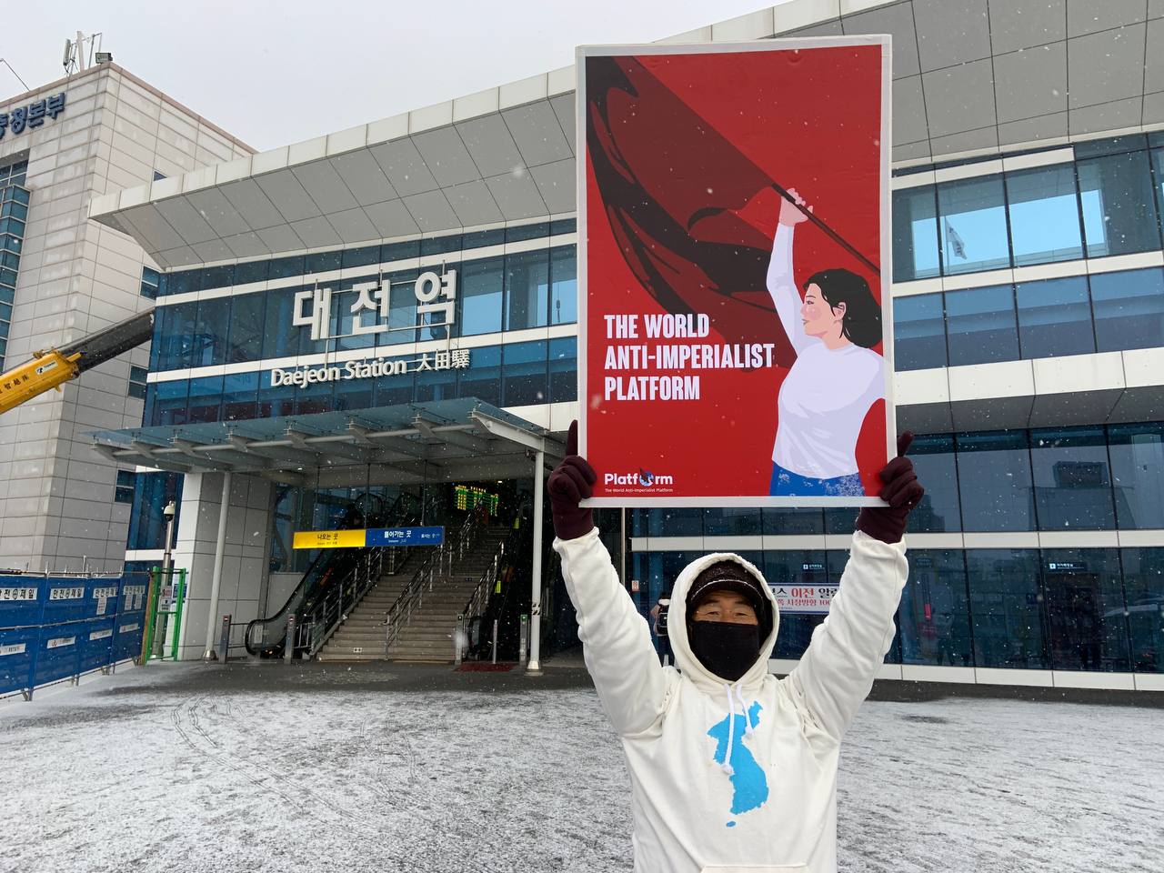 사회자는 <대전을 포함한 국내 10여개도시를 비롯해 세르비아, 미국, 영국, 프랑스, 벨기에, 스위스, 이탈리아, 스페인, 칠레, 그리스 등 세계 30여개도시에서 반제투쟁이 동시다발로 진행된다>며 <미제국주의의 전쟁책동이 가장 악랄하게 벌어지는 이땅에서 미군철거와 윤석열친미친일호전정부퇴진을 외치는 것이 또다른 반제투쟁임을 확인하며 세계반제세력과 굳건히 연대할 것이다>라고 밝혔다.