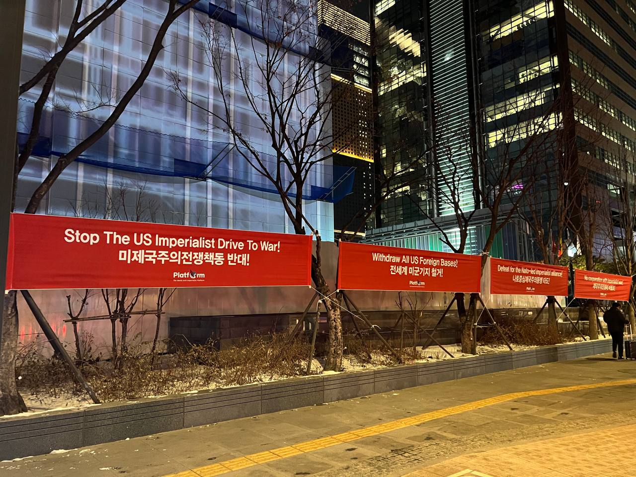 〈미제국주의전쟁책동 반대!〉 세계반제플랫포옴 가로막게시 (사진)
