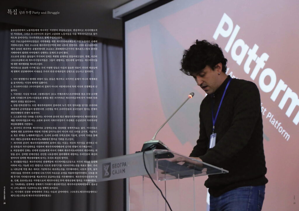 이곳 구유고슬라비아민중들은 지역제패를 위한 제국주의파괴책동의 가장 노골적인 사례에 직면하고있다. 바로 코소보내 세르비아인구역에 대한 나토의 점령이다. 1999 유고슬라비아에서 있었던 파괴적인 유혈전쟁이후 코소보는 최대해외미군기지인 캠프본드스틸의 완전한 지배하에서 범죄와 마약밀매가 성행하는 문제의 온상이 됐다.