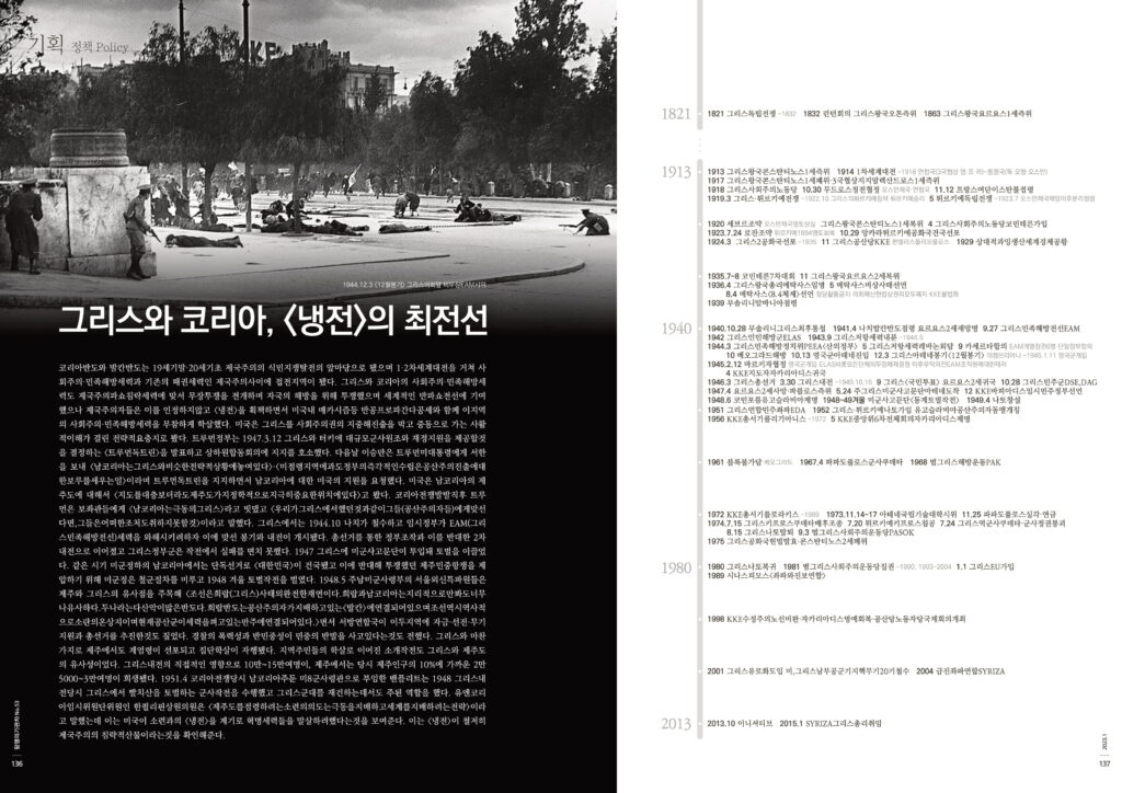 코리아반도와 발칸반도는 19세기말·20세기초 제국주의의 식민지쟁탈전의 앞마당으로 됐으며 1·2차세계대전을 거쳐 사회주의·민족해방세력과 기존의 패권세력인 제국주의사이에 접전지역이 됐다. 그리스와 코리아의 사회주의·민족해방세력도 제국주의파쇼침략세력에 맞서 무장투쟁을 전개하며 자국의 해방을 위해 투쟁했으며 세계적인 반파쇼전선에 기여했으나 제국주의자들은 이를 인정하지않고 <냉전>을 획책하면서 미국내 매카시즘등 반공프로파간다공세와 함께 이지역의 사회주의·민족해방세력을 무참하게 학살했다. 미국은 그리스를 사회주의권의 지중해진출을 막고 중동으로 가는 사활적이해가 걸린 전략적요충지로 봤다. 트루먼정부는 1947.3.12 그리스와 터키에 대규모군사원조와 재정지원을 제공할것을 결정하는 <트루먼독트린>을 발표하고 상하원합동회의에 지지를 호소했다. 다음날 이승만은 트루먼미대통령에게 서한을 보내 <남코리아는그리스와비슷한전략적상황에놓여있다>·<미점령지역에과도정부의즉각적인수립은공산주의진출에대한보루를세우는일>이라며 트루먼독트린을 지지하면서 남코리아에 대한 미국의 지원을 요청했다. 미국은 남코리아의 제주도에 대해서 <지도를대충보더라도제주도가지정학적으로지극히중요한위치에있다>고 봤다. 코리아전쟁발발직후 트루먼은 보좌관들에게 <남코리아는극동의그리스>라고 빗댔고 <우리가그리스에서했던것과같이그들(공산주의자들)에게맞선다면,그들은어떠한조처도취하지못할것>이라고 말했다. 그리스에서는 1944.10 나치가 철수하고 임시정부가 EAM(그리스민족해방전선)세력을 와해시키려하자 이에 맞선 봉기와 내전이 개시됐다. 총선거를 통한 정부조작과 이를 반대한 2차내전으로 이어졌고 그리스정부군은 작전에서 실패를 면치 못했다. 1947 그리스에 미군사고문단이 투입돼 토벌을 이끌었다. 같은 시기 미군정하의 남코리아에서는 단독선거로 <대한민국>이 건국됐고 이에 반대해 투쟁했던 제주민중항쟁을 제압하기 위해 미군정은 철군절차를 미루고 1948 겨울 토벌작전을 벌였다. 1948.5 주남미군사령부의 서울외신특파원들은 제주와 그리스의 유사점을 주목해 <조선은희랍(그리스)사태의완전한재연이다.희랍과남코리아는지리적으로만봐도너무나유사하다.두나라는다산악이많은반도다.희랍반도는공산주의자가지배하고있는<발칸>에연결되어있으며조선역시역사적으로소란의온상지이며현재공산군이세력을펴고있는만주에연결되어있다.>면서 서방연합국이 이두지역에 자금·선전·무기지원과 총선거를 추진한것도 짚었다. 경찰의 폭력성과 반민중성이 민중의 반발을 사고있다는것도 전했다. 그리스와 마찬가지로 제주에서도 계엄령이 선포되고 집단학살이 자행됐다. 지역주민들의 학살로 이어진 소개작전도 그리스와 제주도의 유사성이었다. 그리스내전의 직접적인 영향으로 10만~15만여명이, 제주에서는 당시 제주인구의 10%에 가까운 2만5000~3만여명이 희생됐다. 1951.4 코리아전쟁당시 남코리아주둔 미8군사령관으로 부임한 밴플리트는 1948 그리스내전당시 그리스에서 빨치산을 토벌하는 군사작전을 수행했고 그리스군대를 재건하는데서도 주된 역할을 했다. 유엔코리아임시위원단위원인 한필리핀상원의원은 <제주도를점령하려는소련의의도는극동을지배하고세계를지배하려는전략>이라고 말했는데 이는 미국이 소련과의 <냉전>을 계기로 혁명세력들을 말살하려했다는것을 보여준다. 이는 <냉전>이 철저히 제국주의의 침략적산물이라는것을 확인해준다.