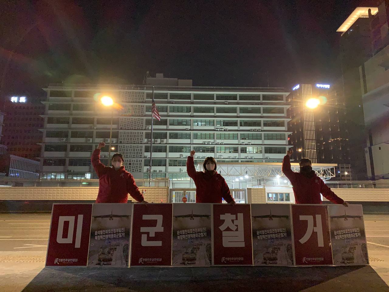 <윤석열친미호전정부퇴진! 북침핵전쟁책동미군철거!> 미대사관앞정당연설회는 1420일째 진행됐다.