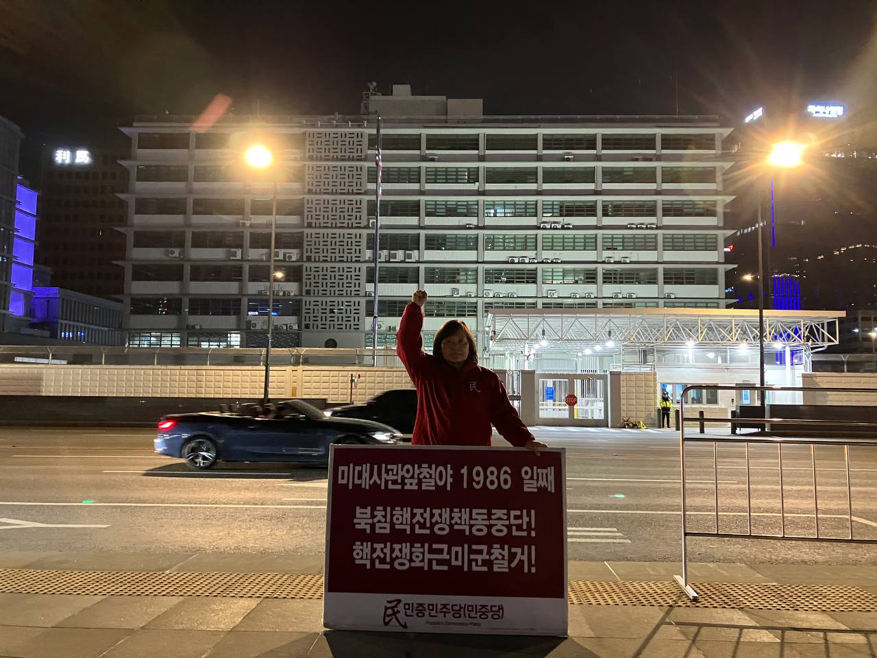 5일 민중민주당(민중당)은 미대사관앞에서 <윤석열친미호전정부퇴진! 북침핵전쟁책동중단! 핵전쟁화근 미군철거!> 구호를 들고 평화시위를 2420일째 전개했다