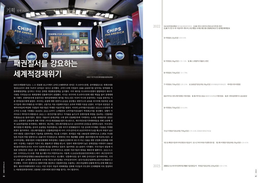 IMF(국제통화기금)는 1.15 발표한 보고서에서 코비드19팬데믹과 뒤이은 우크라이나전쟁, 중미대립등으로 세계국내총생산(GDP)이 최대 7%까지 낮아질수 있다고 분석했다. 코비드19에 미연준이 2008 금융위기를 넘어서는 양적완화 즉 통화팽창정책을 실시하고 각국은 강력한 재정확장정책을 실시했다. 이어 때마침 우크라이나전쟁이 발발하면서 에너지·식량등 가격상승으로 세계경제에 인플레이션이 유발됐다. 미국은 러시아에 우크라이나전에 대한 책임을 물어 경제제재를 가했다. 전쟁여론속에 유럽각국은 대러경제제재의 대가를 치르는것은 미국이 아니라 유럽이라는 사실을 알면서도 이를 받아들일수밖에 없었다. 러시아는 유럽에 대한 천연가스공급을 중단했고 천연가스의 40%를 러시아에 의존하던 유럽국가들에 <에너지대란>을 야기했다. 고물가로 석유·곡물메이저들은 오히려 막대한 이윤을 남겼다. 국가들과 민중들은 경제적어려움에 빠질때 기업들과 자본가들은 막대한 이윤잔치를 벌였다. 미국의 소비자물가상승률은 2022.6 41년만의 최고치인 9.1%를 기록했고 유로존도 2022.10까지 12개월연속 소비자물가상승률이 역대최고치를 경신했다. 상황이 이러다보니 바이든미<대통령>은 2022.11 중간선거를 앞두고 지지율을 높이고자 동맹국들에 희생을 강요하는 <인플레감축법(IRA)>을 통과시켰다. 법안은 지출보다 증세금액을 크게 잡아 인플레감축에 기여한다는 논리를 내세웠지만 실상은 2021 상원에서 공화당에 의해 거부된 <더나은재건(BBB)>법의 축소판으로, 에너지안보및기후변화대응을 위해 10년에 걸쳐 3690억달러를 투자한다는 계획이다. 최근에는 <반도체지원법>등으로 남코리아의 삼성등을 압박하고있다. 미국<반도체지원법>의 배경에는 중국의 공급망을 차단하겠다는 강한 의지가 반영돼있어서 기존 중국에 투자해온 기업들은 막대한 희생이 불가피하다. <반도체지원법>은 <인플레감축법>에 이어 <미우선주의>의 보호무역주의기조를 확고히 하면서 남코리아·대만등 신흥국가들의 기술력을 절취하려는 의도를 드러냈다. 혹자들은 이를 1980년대 경제적으로 2·3위로 부상한 일본·독일의 부를 일방적으로 유출시켜 미국중심으로 세계적인 부의 재분배를 실현한 <플라자합의>에 비유하고있다. 남코리아경제는 세계시장의 국제분업체계하 하위경제로 수출중심경제이며 내수가 아닌 수출을 위한 산업화·공업화를 이뤄냈다. 이경제는 수출입의 기준이 되는 환율에 큰 영향을 받는다. 일본이 세계시장에서 높은 경제성장을 이뤄내자 1980년대<플라자합의>조치로 미국이 일본에 엔고를 강박하고 일본의 <잃어버린> 30~40년이 시작됐다. 각국가들이 힘들게 이뤄낸 경제성장의 결실은 결국 세계패권국의 국가적이익으로 포장된 자본가들의 탐욕을 채워주게 될뿐이다. 2022.9.21 IMF 수석이코노미스트를 지낸 옵스펠드미UC버클리교수는 서울에 <G20글로벌금융안정컨퍼런스>에서 <최근달러가치상승의부정적파급영향은1980년대보다클것>이라고 경고했다. 인플레이션을 잡기 위해 금리인상이 불가피하지만, 각국이 조율 없이 급격한 통화긴축에 나서면 대규모경기침체로 이어질것이라며 <결국서로를궁핍화하는결과가초래된다>고 주장했다. 각국이 경쟁적으로 통화가치를 절상하고 인플레이션을 수출하는 <죄수의딜레마>상황에 빠지는것에 대해 경고했다. 제국주의세력내에서 나오는 이런 주장이 저들의 세계패권을 강화해 자신들의 주도권이 문제해결에 더욱 절실하다는 여론형성과정이라면 그결과란 고양이에게 생선가게를 맡기는 격이 될것이다.
