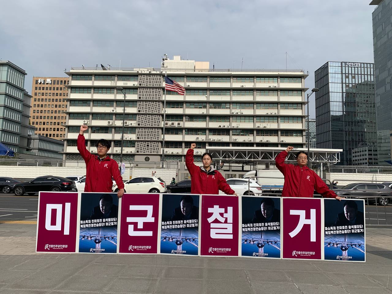 <윤석열친미호전정부퇴진! 북침핵전쟁책동미군철거!> 미대사관앞정당연설회는 1502일째 진행됐다.