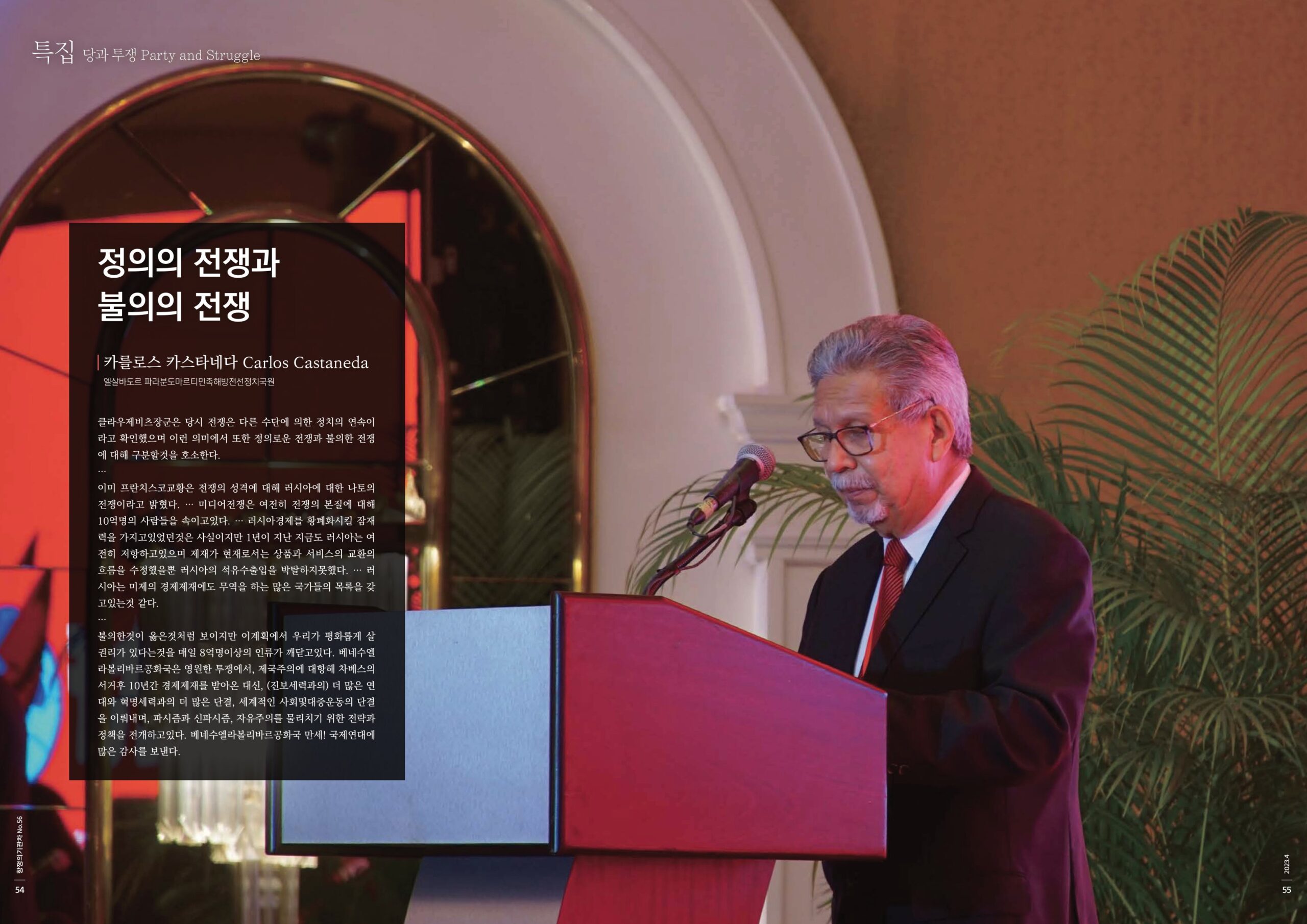 불의한것이 옳은것처럼 보이지만 이계획에서 우리가 평화롭게 살 권리가 있다는것을 매일 8억명이상의 인류가 깨닫고있다. 베네수엘라볼리바르공화국은 영원한 투쟁에서, 제국주의에 대항해 차베스의 서거후 10년간 경제제재를 받아온 대신, (진보세력과의) 더 많은 연대와 혁명세력과의 더 많은 단결, 세계적인 사회및대중운동의 단결을 이뤄내며, 파시즘과 신파시즘, 자유주의를 물리치기 위한 전략과 정책을 전개하고있다. 베네수엘라볼리바르공화국 만세! 국제연대에 많은 감사를 보낸다.