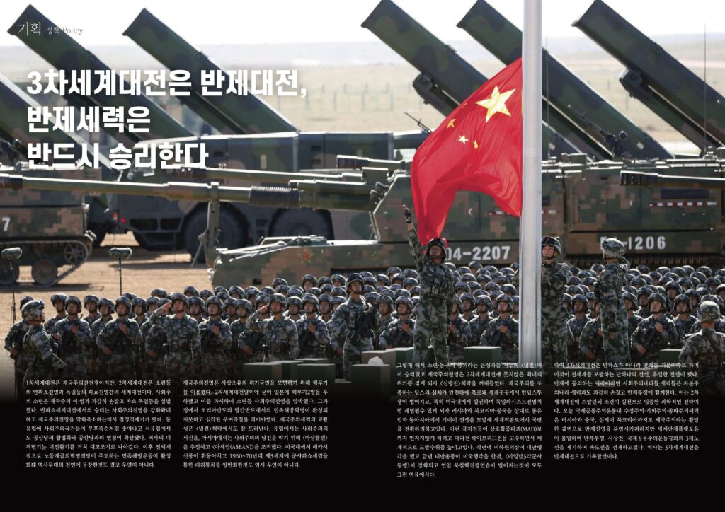하여 3차세계대전은 반파쇼가 아니라 반제를 기본이슈로 하며 이것이 전세계를 포괄하는 단하나의 전선, 유일한 전선이 됐다. 반제에 동의하는 세력이라면 사회주의나라들·세력들은 자본주의나라·세력과도 과감히 손잡고 반제투쟁에 함께한다. 이는 2차세계대전때 스탈린의 소련이 실천으로 입증한 과학적인 전략이다. 오늘 국제공동주의운동내 수정주의·기회주의·종파주의세력은 러시아와 중국, 심지어 북코리아까지도 제국주의라는 황당한 궤변으로 반제진영을 분열시키려하지만 세계반제플랫포옴이 출범하며 반제투쟁, 사상전, 국제공동주의운동강화의 3대노선을 제기하며 속도전을 전개하고있다. 역사는 3차세계대전을 반제대전으로 기록할것이다.