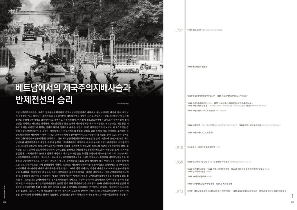 프랑스식민주의자들은 18세기 영국동인도회사와의 인도식민지쟁탈전에서 패배하고 동남아시아로 관심을 돌려 베트남에 진출했다. 당시 베트남은 후에지역의 응우옌가문이 베트남전역을 통일한 시기로 프랑스는 1858~62 베트남에 군사적침략을 감행해 남부지역을 코친차이나로 개명하고 식민지화했다. 이과정에 청프랑스전쟁에서 프랑스가 승리하면서 청의 간섭을 배제하고 베트남을 장악했다. 베트남인들은 궁을 습격해 베트남황제를 데려가 저항했으나 프랑스는 다른 왕을 세우고 지배를 이어갔으며 황제는 몇해후 체포해 알제리로 유배를 보냈다. 1885 베트남전역과 캄보디아, 라오스지역을 장악해 프랑스령인도차이나를 세웠다. 베트남에서는 판보이쩌우의 활동등 광복을 위한 투쟁이 계속 이어졌다. 호치민은 프랑스식민치하의 베트남에서 태어나 1924 코민테른에서 동방부상무위원으로 <남방국>의 책임을 맡아 1925 중국 광저우에서 <베트남청년혁명동지회>를 조직하고 1930 베트남공산당(인도차이나공산당)창건에 나섰으며 1930~40년대 베트남민족과 피압박민족들의 해방을 위해 활동했다. 2차세계대전이 발발하자 나치에 굴복한 프랑스비시정권의 식민통치기구와 1940.9 일본군이 프랑스령인도차이나지역에 진출해 공존하면서 베트남은 프랑스와 일본의 2중식민지가 됐다. 호치민은 1941 귀국해 인도차이나공산당의 구국노선을 결정하고 <베트남독립동맹회>(베트민)와 해방군을 조직, 근거지를 창설했다. 나치패망이후 1945.8 일제가 패망하고 베트민과 해방군은 유리한 조건속에 하노이봉기에 나서 1945.9 베트남민주공화국을 선포했다. 호치민은 1946 베트남민주공화국주석으로, 1951 인도차이나공산당을 베트남노동당으로 변경하고 당중앙위주석으로 선거됐다. 프랑스는 영국과 장개석등의 도움을 받아 베트남에 다시 무력침공을 감행하면서 베트남·캄보디아·라오스는 다시 전쟁상황에 처했다. 프랑스는 베트남민주공화국을 인정하지않고 교섭상대로 응우옌왕조의 마지막황제 바오다이를 내세워 베트남국을 세우게 했다. 그러나 결국 프랑스는 전쟁에 패배했으며 미국의 영향아래 공화국이 수립됐다. 친미정권의 관료들은 프랑스식민치하의 부역자들이었다. 미국은 베트남에서 <베트남인에의한베트남전쟁>을 주장하며 <특수전>을 전개했다. 미국의 지배에 항거한 남베트남인들은 남베트남민족해방전선을 결성해 투쟁을 전개했다. 1960년대초 남베트남에서는 정치경제적모순이 극단으로 치달아 쿠데타가 연속적으로 일어나는등 정국이 혼란에 빠졌다. 미정부는 베트남식민지배안정의 출로를 찾기 위해 통킹만사건을 조작했다. 1968 남베트남민족해방전선의 해방군은 구정대공세를 통해 승기를 얻고 여기에 국내와 국제사회의 반전여론이 고조되면서 미정부는 정전회담에 나서지않을수 없었다. 1973.3 미군이 베트남에서 완전히 철거되자 그로부터 2년뒤인 1975.4.30 남베트남민족해방전선이 사이공을 장악하면서 친미세력을 완전히 축출했다. 남베트남은 1년뒤 북베트남과 통일된 베트남사회주의공화국을 건설했다.