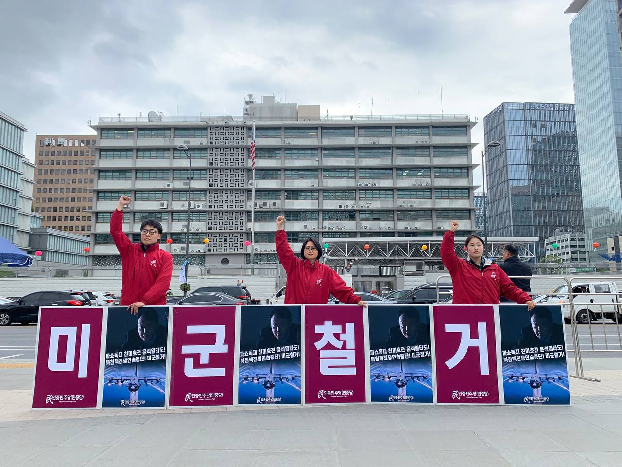<윤석열친미호전정부퇴진! 북침핵전쟁책동미군철거!> 미대사관앞정당연설회는 1516일째 진행됐다.