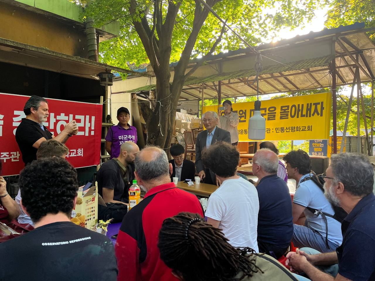 17일 세계반제플랫포옴해외대표단은 민통선안에 위치한 평화교회에 방문했다. 이곳에서 코리아반도의 자주와 민주, 통일을 위해 투쟁하다가 43여년간 수감생활한 안학섭비전향장기수와 특별한 만남을 가졌다.