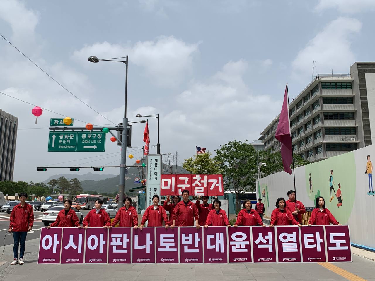 21일 민중민주당(민중당)은 미대사관앞에서 <아시아판나토획책G7반대! 윤석열타도! 미군철거!> 정당연설회를 진행했다.
