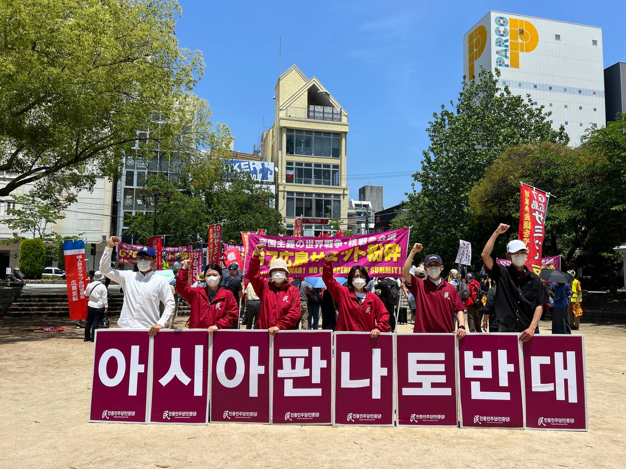 G7정상회의기간인 19~21일(현지시간) 민중민주당(민중당)세계반제플랫포옴히로시마원정단의 히로시마원정투쟁이 전개됐다.