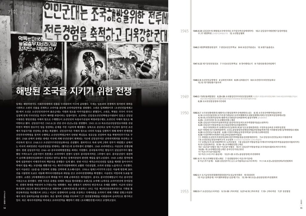 일제는 패망하면서도 사회주의세력의 진출을 두려워하며 미국에 굴복했다. 미제는 일본과의 전쟁에서 원자탄의 위력을 시위하고 소련의 진출을 견제하고 코리아를 분단해 코리아남반부를 점령했다. 소련은 일제패망이후 <조선인민들에게고함>에서 조선은 조선인민의것이며 붉은군대는 지원과 원조를 아끼지않겠다고 밝혔듯이, 소련은, 혁명은 각국이 각국의 실정에 맞게 각국인민들 자신이 해야할 과업이라는 입장이었다. 조선에는 김일성조선인민혁명군사령관이 있었고 김일성사령관은 항일전쟁을 자체의 힘으로 수행했듯이 조선인민의 독립국가건설과 혁명과업수행도 조선인민 자체의 힘으로 해야한다고 봤다. 김일성주석은 1945.8.20 건당·건국·건군노선을 천명했다. 1945.10.10 북조선공산당중앙조직위를 건설하면서 혁명의 참모부인 당을 창건하는 문제를 가장 시급하게 해결했다. 남북으로 분단되고 남에 미군정이 들어선 조건에서 독립국가를 건설하는 문제는 복잡했다. 김일성주석은 자체의 힘으로 나라의 독립을 실현하기 위해 북에서 반제반봉건민주주의혁명을 철저히 수행하고 조선인민혁명군에서 단련된 핵심들로 정규군을 건설하며 북을 혁명적민주기지로 꾸렸다. 1948 남에서 유엔을 내세운 미국에 의해 단선단정이 획책되는 가운데 김일성주석은 남북연석회의를 추진하고 우리민족의 힘으로 1948.9.9 조선민주주의인민공화국을 건설했다. 결과적으로 북과 남에 2개의 정부가 대립했고 남에서는 미국의 괴뢰정권인 이승만정권을 반대하는 <빨치산>의 유격투쟁이 전개됐다. 1949 코리아반도는 사실상의 전쟁상태였다. 한편 김일성주석은 1946~49 중국국내혁명전쟁을 최대로 지원했다. 중국동북지역은 항일시기 김일성주석이 활동했던 지역으로서 군중지반이 튼튼했고 코리아에서 전쟁이 날경우 중국동북지역은 그후방이 된다. 중국공산당이 내전에서 승리해 중화인민공화국이 건설되고 만주로 쫓겨난 장개석잔당의 완전한 제압을 앞두고있었다. 1949 소련은 원자탄개발에 성공하면서 미제국주의의 핵공격을 견제할수 있게 됐다. 반면 미국은 애치슨라인선언등 일본을 제외한 동아시아지역에서 발을 빼는 모양새를 취했지만 이는 제국주의침략세력의 교활한 기만전일뿐, 오히려 전쟁을 노골적으로 추진했다. 당시 이승만은 <승공>을 주장하며 전쟁을 강력하게 호소해나섰다. 1950.6 덜레스미국무부고문은 서울에 방문해 38도선을 시찰한뒤 도쿄로 이동해 맥아더사령관등과 회담을 갖고 코리아전쟁계획을 확정했다. 이승만도 비밀리에 도쿄를 방문했다. 소련은 3차세계대전으로의 확대를 막기 위해 군대파견은 하지않았다. 중국도 중국인민해방군이 아닌 중국인민지원군으로 참전했다. 반면 미국은 유엔을 내세워 개입을 합리화했고 유엔군을 조작해 16개국을 코리아전선에 끌어들였다. 전쟁의 확대를 바란것이 누구였는가는 명확했다. 북은 전쟁초기 선제적인 반공격으로 우세를 점했다. 미군의 인천상륙작전에 3일간의 월미도방어전으로 대항하며 <전략적후퇴>를 보장하고 1952 가을 제2의인천상륙작전으로 기획된 통천상륙작전을 차단했으며 1953.1 미군이 전쟁에서의 승리를 포장하고 국제여론을 조작하기 위해 기획된 정형고지전투에서 북의 성과적승리를 담보했다. 북은 철저히 전세를 주도하며 7.27 정전협정체결을 이뤄냈다며 승리적으로 평가하고있다. 북은 제국주의침략을 막아내고 코리아전역을 해방하기 위한 <조국해방전쟁>이라고 규정하고있다.