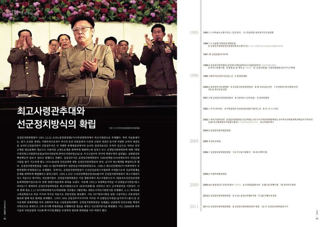김정일국방위원장이 1991.12.24 조선노동당중앙위6기19차전원회의에서 최고사령관으로 추대됐다. 북의 자료들에서는, 당시 조성된 정세는 사회주의수호전이 역사의 온갖 반동들과의 사상과 신념의 대결인 동시에 격렬한 군력의 대결임을 보여주고있었다면서 김일성주석은 이 격렬한 반제대결전에서의 승리의 결정적요인은 무적의 강군으로 자라난 인민군대를 필승불패의 대군으로 이끌어갈 군영도문제를 완벽하게 해결하는데 있다고 보고 김정일국방위원장에 대해 <혁명무력의최고사령관다운불굴의의지와담력,뛰어난지략과영군술>을 지니고있다며 여기에 혁명무력의 끊임없는 강화발전과 백전백승의 담보가 있다고 말했다고 전했다. 김일성주석은 김정일국방위원장이 1960년대말1970년대초부터 인민군대사업을 맡아 지도하게 했고 1970·80년대 인민군대에 대한 김정일국방위원장의 당적, 군사적 영도체계를 확립하도록 했다. 김정일국방위원장을 1980.10 당6차대회에서 당중앙군사위원회위원으로, 1990.5 최고인민회의9기1차회의에서 국방위원회1부위원장으로 추대했다. 북에서는 김정일국방위원장이 조선인민군최고사령관에 추대됨으로써 건군위업계승문제를 완벽하게 해결했다고 밝히고있다. 1992.4.25은 조선인민혁명군창건60돌이며 김정일국방위원장이 최고사령관이 되고 처음으로 맞이하는 건군절이었다. 김정일국방위원장은 이날 열병식에서 최고사령관으로서 <영웅적조선인민군장병들에게영광이있으라>며 전체 열병부대들에게 축하를 보냈다. 이듬해 1993.3 북침핵공격연습 미·남합동군사연습<팀스피리트>가 재개되자 김정일국방위원장은 최고사령관으로서 <준전시상태>를 선언하고 당시 군사대결전을 이끌었다. 이와 함께 북은 3.12 NPT(핵전파방지조약)탈퇴를 선언했고 5월말에는 첫탄도미사일시험발사를 단행했다. 6.11 북미뉴욕고위급회담으로 북은 미국과 역사상 처음으로 공동성명을 발표했다. 이는 NPT탈퇴시한을 앞둔 시점이었고 공동성명의 발표와 함께 북은 탈퇴를 유예했다. 그러나 1994 김일성주석서거이후 미국은 미·남합동군사연습<을지포커스렌즈>등 군사공세와 경제제재를 더욱 강화하며 북을 고립압살하려했다. 김정일국방위원장은 전례없는 난관앞에 인민군대를 혁명의 주력군으로 내세우고 그에 의거해 혁명과업을 수행해나갈 결심을 세우고 선군정치방식을 확립했다. 이는 2000년대 과학기술과 국방공업에 기초해 핵·미사일개발등 무장력의 첨단화·현대화를 이끈 바탕이 됐다.