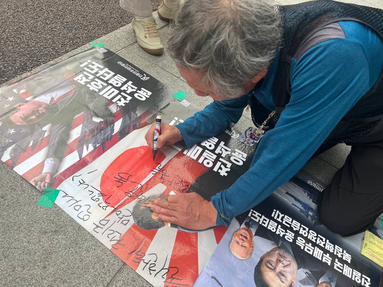 당원들은 참가자들에게 민중민주당신문 民112호 <윤석열타도! 미일남3각군사동맹규탄! 북침핵전쟁연습금지!>를 배포하고, 포스터 <친일매국 윤석열타도!>, <친미호전 윤석열타도!>, <친일매국 부패무능 윤석열타도! 북침핵전쟁연습금지!>를 부착했다.