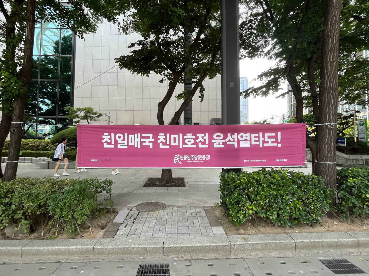 반파쇼반제전국순회투쟁 민중민주당 서울종로일대 〈윤석열타도〉가로막게시 2023년 6월 17일 FacebookTwitter 17일 민중민주당(민중당)은 서울 종로구일대에 <친일매국 친미호전 윤석열타도!>, <친일매국 파쇼호전 윤석열타도!>, <친일매국 전쟁책동 윤석열타도!>, <친일매국 북침연습 윤석열타도!>, <친일매국 전쟁동맹 윤석열타도!>를 게시했다.