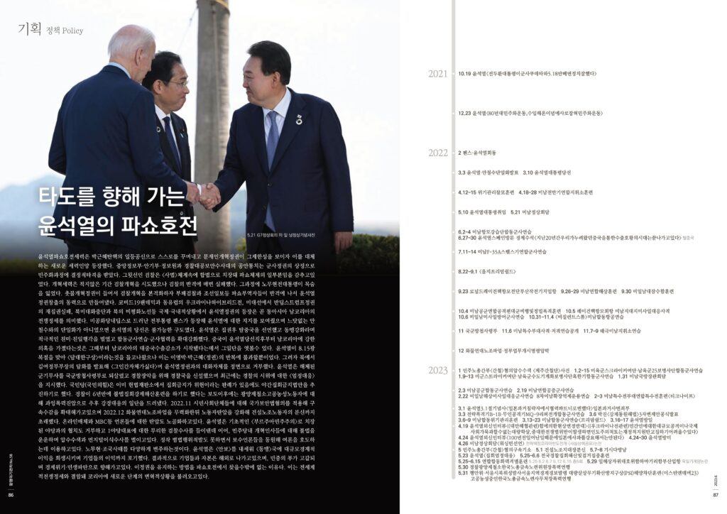 윤석열파쇼호전세력은 박근혜탄핵의 일등공신으로 스스로를 꾸며내고 문재인개혁정권이 그제한성을 보이자 이를 대체하는 새로운 세력인양 등장했다. 중앙정보부·안기부·정보원과 경찰대공보안수사대의 공안통치는 군사정권의 상징으로 민주화과정에 결정적타격을 받았다. 그윗선인 검찰은 <사법>체계속에 합법으로 치장돼 파쇼체제의 일부분임을 감추고있었다. 개혁세력은 적지않은 기간 검찰개혁을 시도했으나 검찰의 반격에 매번 실패했다. 그과정에 노무현전대통령이 목숨을 잃었다. 촛불개혁정권이 들어서 검찰개혁을 본격화하자 부패검찰과 조선일보등 파쇼부역자들이 반격에 나서 윤석열정권창출의 동력으로 만들어냈다. 코비드19팬데믹과 동유럽의 우크라이나하이브리드전, 미대선에서 반딥스트럼프정권의 재집권실패, 북미대화중단과 북의 비평화노선등 국제·국내적상황에서 윤석열정권의 등장은 곧 동아시아 남코리아의 전쟁정세를 의미했다. 미공화당내딥스로 드러난 전부통령 펜스가 등장해 윤석열에 대한 지지를 보여줬으며 느닷없는 안철수와의 단일화가 아니었으면 윤석열의 당선은 불가능한 구도였다. 윤석열은 집권후 탈중국을 선언했고 동맹강화라며 적극적인 친미·친일행각을 벌였고 합동군사연습·군사협력을 확대강화했다. 중국이 윤석열당선직후부터 남코리아에 강한 의혹을 가졌다는것은 그때부터 남코리아의 대중국수출감소가 시작됐다는데서 그일단을 엿볼수 있다. 윤석열이 8.15광복절을 맞아 <담대한구상>이라는것을 들고나왔으나 이는 이명박·박근혜<정권>의 반복에 불과할뿐이었다. 그러자 북에서 김여정부부장의 담화를 발표해 <그인간자체가싫다>며 윤석열정권과의 대화자체를 정면으로 거부했다. 윤석열은 해체된 군기무사를 국군방첩사령부로 되살렸고 경찰장악을 위해 경찰국을 신설했으며 최근에는 경찰의 시위에 대한 <엄정대응>을 지시했다. 국민당(국민의힘)은 이미 헌법재판소에서 집회금지가 위헌이라는 판례가 있음에도 야간집회금지법안을 추진하기로 했다. 경찰이 6년만에 불법집회강제해산훈련을 하기로 했다는 보도이후에는 광양제철소고공농성노동자에 대해 과잉폭력진압으로 추후 강경대응의 일단을 드러냈다. 2022.11 시민사회단체들에 대해 국가보안법혐의를 적용해 구속수감을 확대해가고있으며 2022.12 화물연대노조파업을 무력화한뒤 노동자탄압을 강화해 건설노조노동자의 분신까지 초래했다. 온라인매체와 MBC등 언론들에 대한 탄압도 노골화하고있다. 윤석열은 기초적인 <부르주아민주주의>로 치장된 야당과의 협치도 거부하고 1야당대표에 대한 무리한 검찰수사를 들이댄데 이어, 민주당내 개혁인사들에 대해 불법을 운운하며 압수수색과 먼지털이식수사를 벌이고있다. 정작 범법행위적발도 못하면서 보수언론들을 동원해 여론을 호도하는데 이용하고있다. 노무현·조국사태를 다양하게 변주하는것이다. 윤석열은 <안보>를 내세워 <동맹>국에 대규모경제적이익을 희생시키며 기업들의 이익까지 포기했다. 결과적으로 기업들과 자본은 해외로 나가고있으며, 민중의 부가 고갈되며 경제위기·민생파탄으로 향해가고있다. 이정권을 유지하는 방법을 파쇼호전에서 찾을수밖에 없는 이유다. 이는 전세계적전쟁정세와 결합돼 코리아에 새로운 단계의 변혁적상황을 불러오고있다.