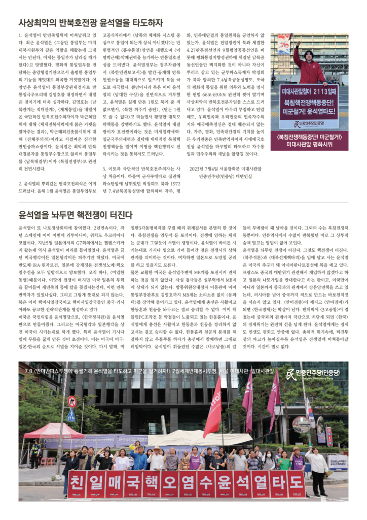 – 민중민주당 미대앞정당연설회 〈아시아판나토획책윤석열타도! 전쟁동맹나토해체!〉 (21세기민족일보, 2023.7.11)