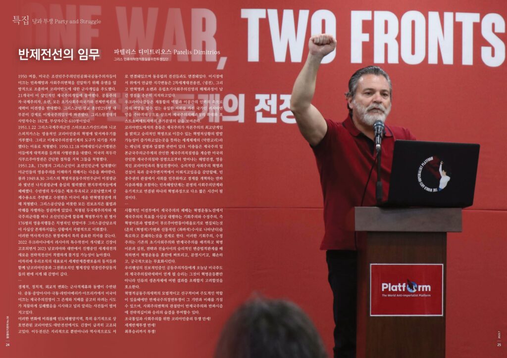 코리아반도에서의 충돌은 제국주의가 자본주의의 최고단계임을 밝히고 승리적인 혁명으로 이끌수 있는 혁명적상황의 발발가능성이 증가하고있는곳을 뜻하는 세계체제의 <약한고리>라는 레닌의 설명과 밀접한 관련이 있다. 이충돌은 제국주의 일본군국주의군주제의 잔인한 제국주의적점령을 계승한 미국의 잔인한 제국주의침략·점령으로부터 벗어나는 해방전쟁, 영웅적인 코리아민족의 통일전쟁이다. 승리적인 사회주의 혁명과 건설이 북과 중국주변지역에서 이뤄지고있음을 감안할때, 민중주권의 관점에서 사회를 민주화하고 경제를 개혁하는 반파시즘과제를 포함하는 민족해방단계는 분명히 사회주의단계와 유기적으로 연결된 하나의 혁명과정으로 다소 짧은 시간이 될것이다.