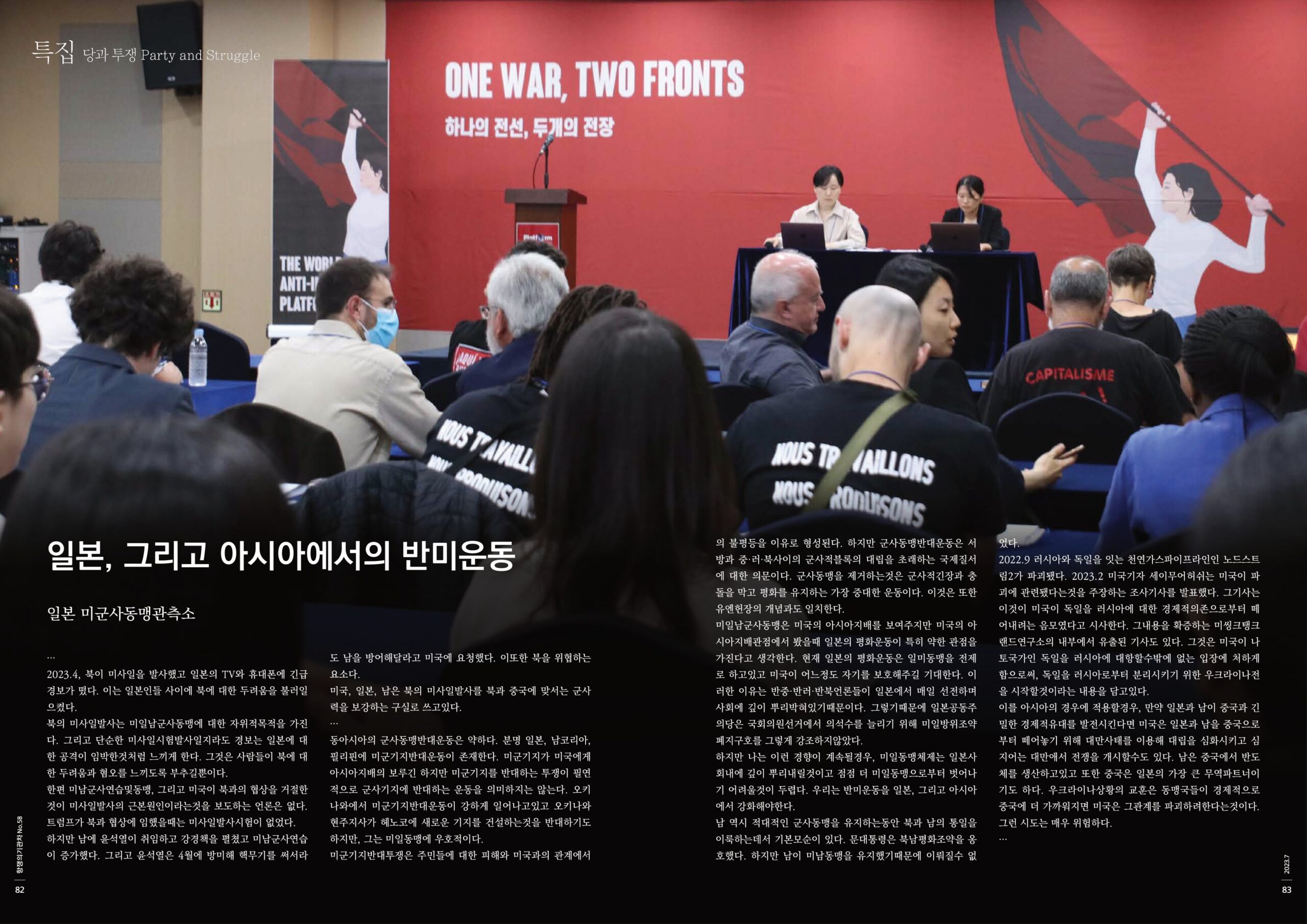 하지만 나는 이런 경향이 계속될경우, 미일동맹체제는 일본사회내에 깊이 뿌리내릴것이고 점점 더 미일동맹으로부터 벗어나기 어려울것이 두렵다. 우리는 반미운동을 일본, 그리고 아시아에서 강화해야한다.