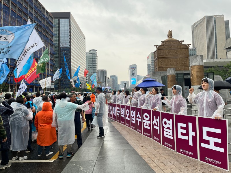 민주노총등 진보세력은 6.27 노동자·농민·여성·자영업자·종교·인권등 각계각층 단체들이 참가한 윤석열퇴진운동본부(준)를 출범하고 7.15 범국민대회를 개최했다. 윤석열정부의 반노동자·반민중정책에 반대하는 민중의 요구가 윤석열퇴진운동본부결성으로 이어졌다. 촛불행동은 지난해 10월중순부터 <윤석열퇴진,김건희특검촛불대행진>등 윤석열정부퇴진투쟁을 벌였고 10.29참사를 겪으며 투쟁은 더욱 거세졌다. 올해 2월 <검찰정부>가 이재명체포영장발부등 야권탄압을 본격화하자 윤석열타도구호를 들기도 했다. 촛불행동측이 꾸준히 활동을 벌여온 가운데 7월 윤석열퇴진운동본부가 발족하며 기층민중의 반윤석열투쟁은 확대·강화되고있다. 양측은 연대연합과 공동행동을 모색하며 윤석열정부를 끌어내리자고 호소하고있다.